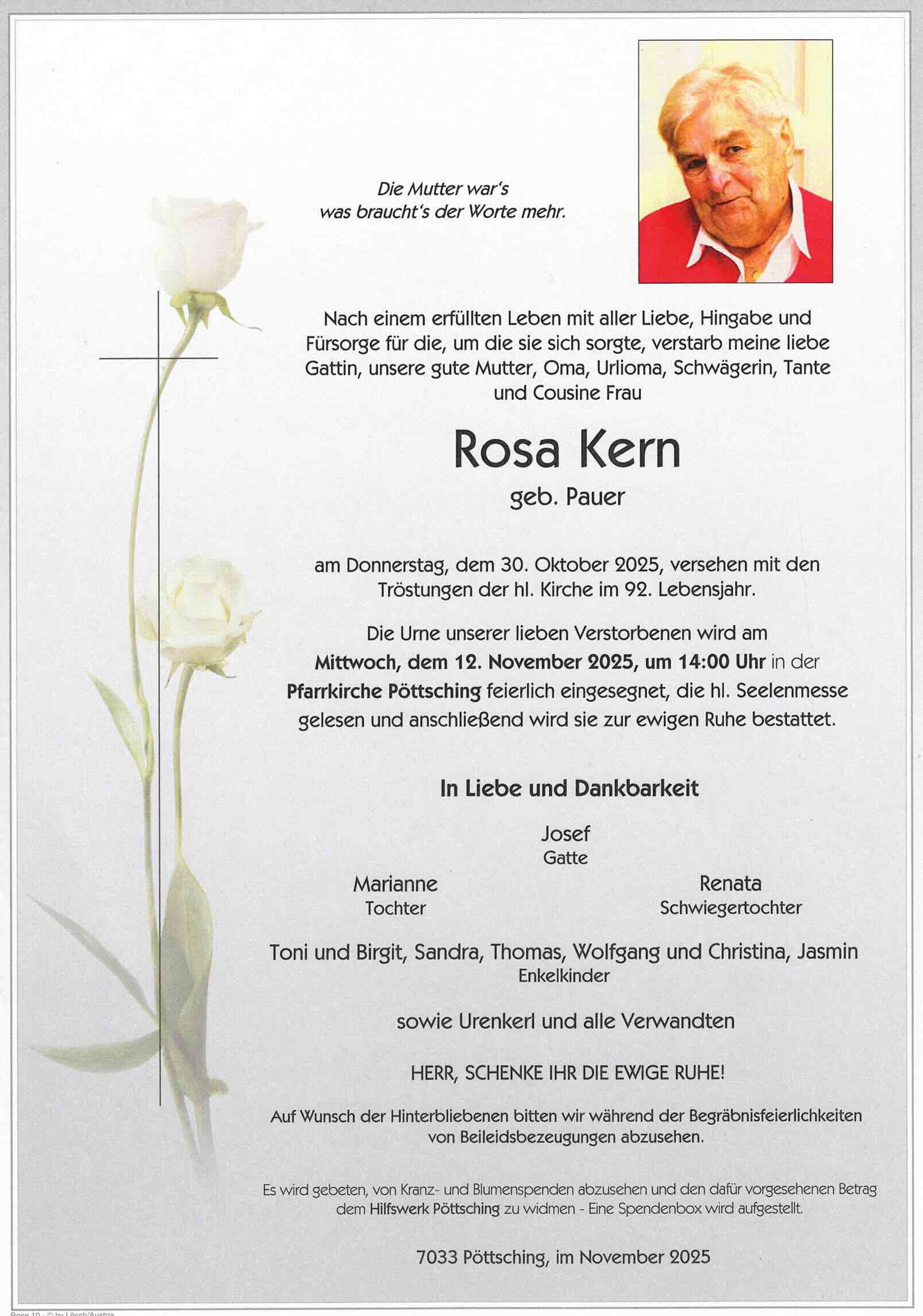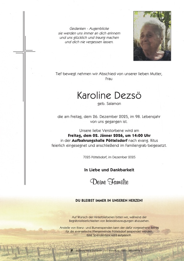 Begräbnis:12.11.2025, 14:00Pfarrkirche Pöttsching