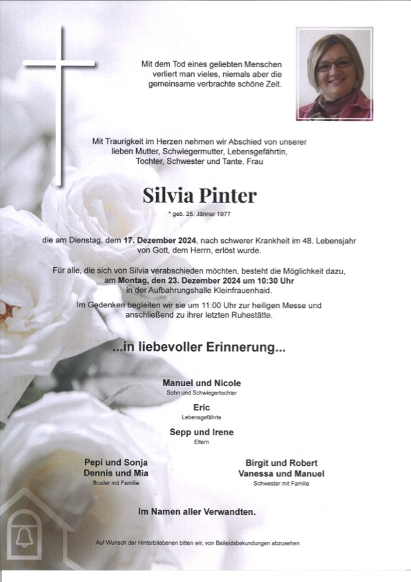 Begräbnis:23.12.2024, 11:00Aufbahrungshalle Kleinfrauenhaid