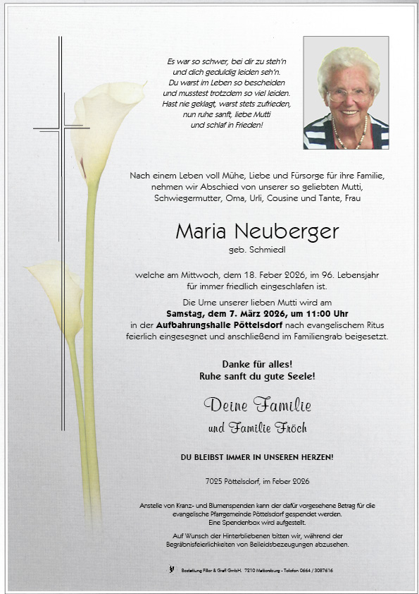 Begräbnis:27.02.2026, 14:00Stadtpfarrkirche Mattersburg