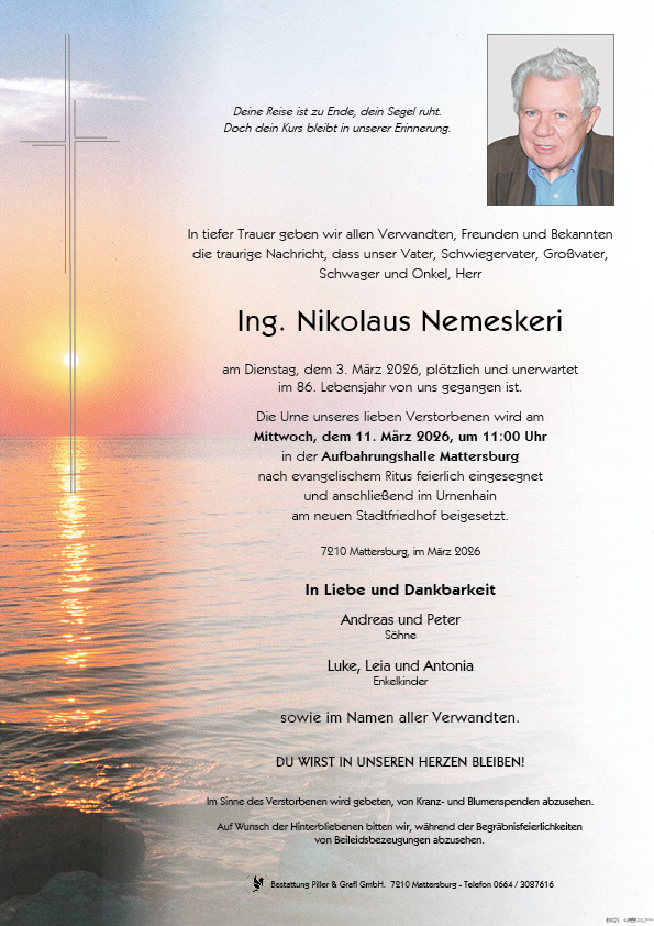 Begräbnis:10.03.2026, 15:00Aufbahrungshalle Mattersburg