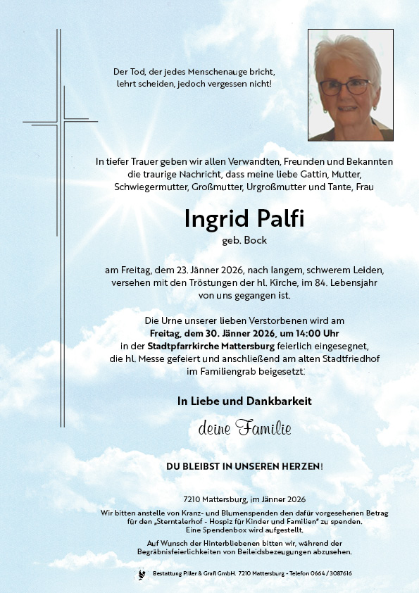 Begräbnis:23.01.2026, 14:00Stadtpfarrkirche Mattersburg